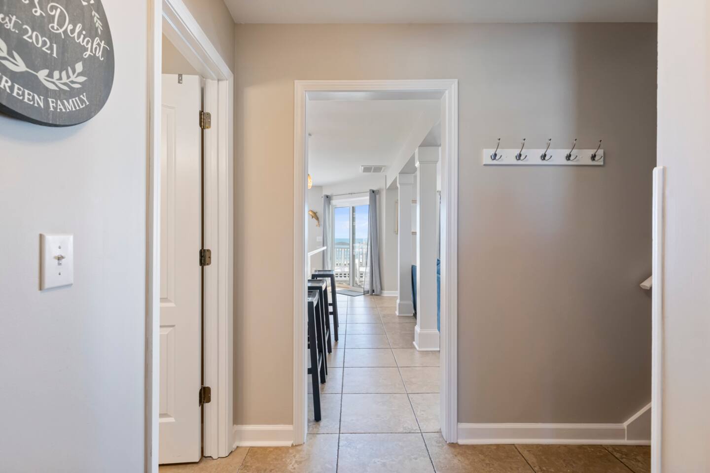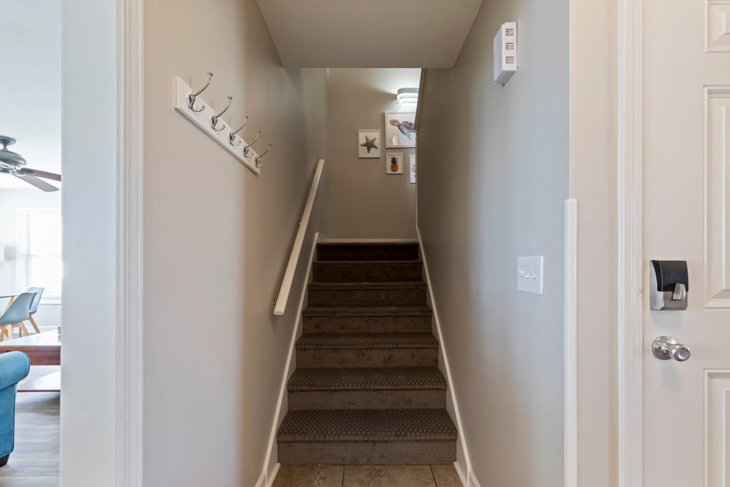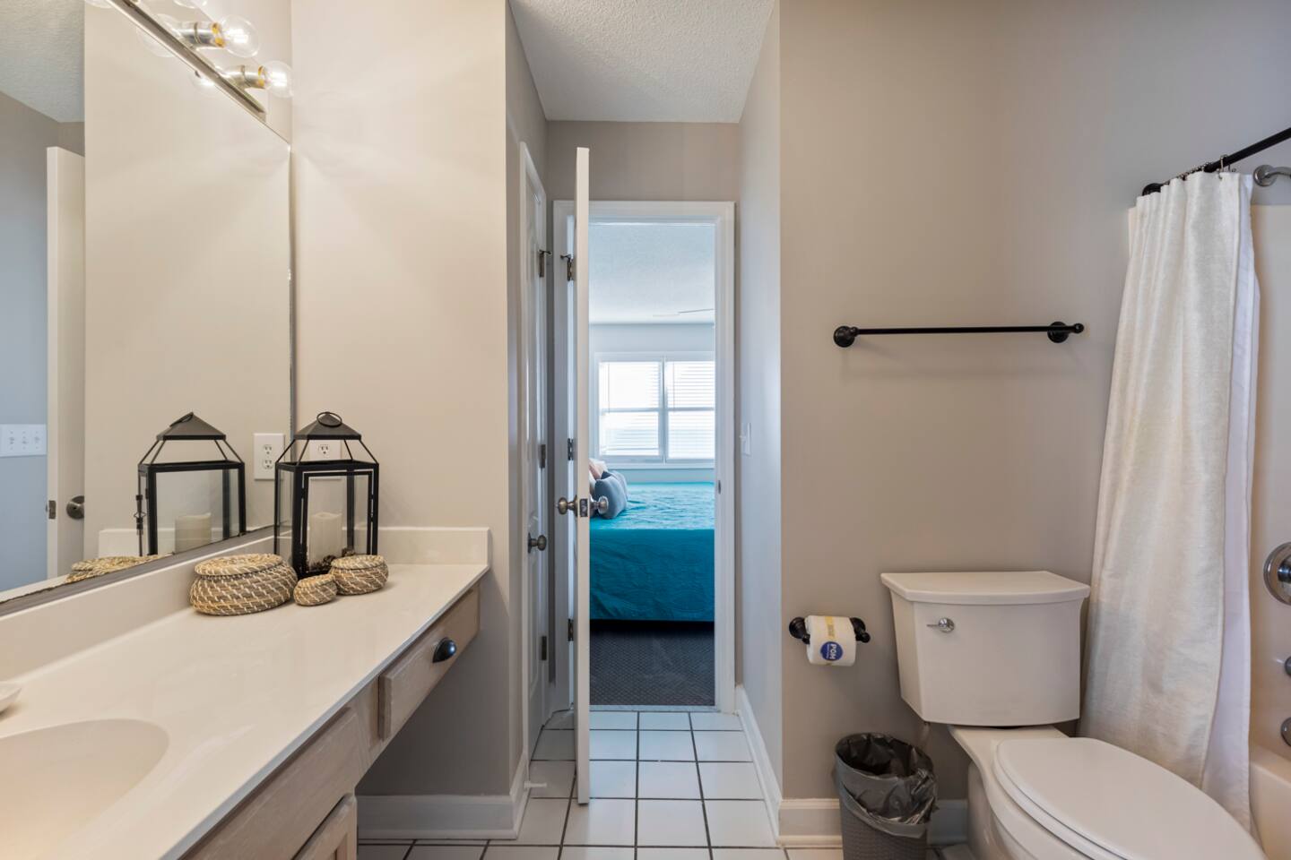 You’ll arrive at Siren's Song and Mermaid's Delight to find the large open covered bonus spaces with picnic table and bench for hanging out on those hot summer days. Under the stairs leading to the front door you will find a treasure trove of beach toys and chairs to enjoy during your stay. In each home as you ease through the electronic keypad accessed front doors you will first find the main level bedroom on your left, which boasts 2 twin over full bunkbeds, then on your right you will find the main level full bathroom as you make your way to the open kitchen, dining, and living room. From the open common area you can go through one of two large sliding glass doors that invite you to relax on the first level deck. You can easily walk through the gate on the main level deck, down the stairs to find yourself with two great options: jump in the pool or walk onto the beach (can’t go wrong!). Back inside the houses, head upstairs to the second level to find the back bedroom with a twin over full bunk bed and a twin over twin bunk bed attached to a Jack-and-Jill full bathroom shared with the 2nd master bedroom. Down the hall you will pass the washer/dryer laundry closet as you arrive at the 2nd master bedroom. Enjoy full ocean views from the 2nd master bedroom while you relax in the king size bed or twin daybed, or open the large sliding glass door to spend some time on the second level deck watching for your mermaid friends! Across the hall is the master bedroom with private full en suite bathroom. The master bedroom includes a luxurious king size bed, work space, and large sliding glass door to the second level balcony.