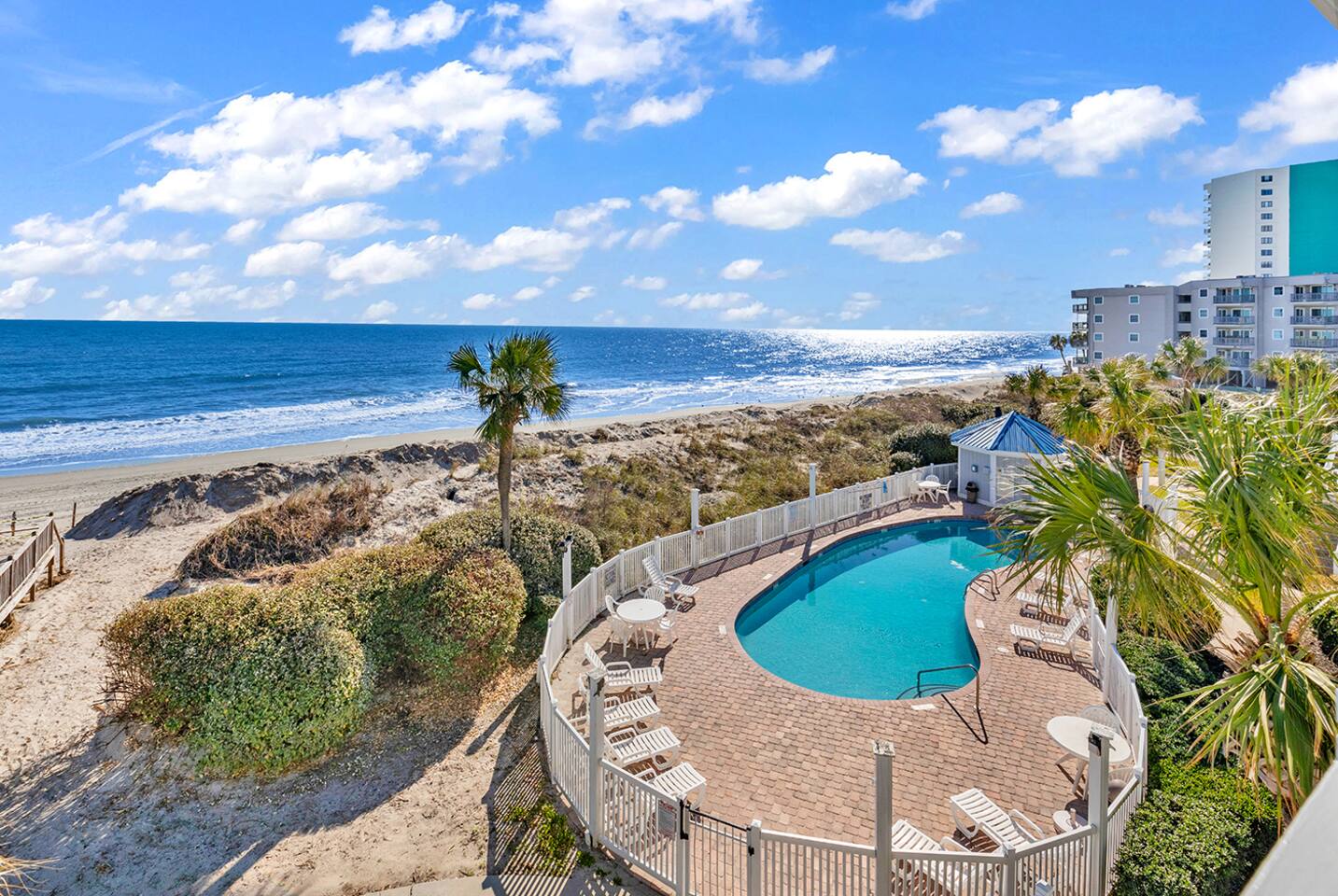 Located in the desirable Portofino I , just 1 mile north of the Garden City Beach Pier and 4.5 miles from the Murrells Inlet Marsh Walk. Neighborhood of only 10 homes, share a private seasonally heated pool, private beach access, outdoor showers, and grass area.